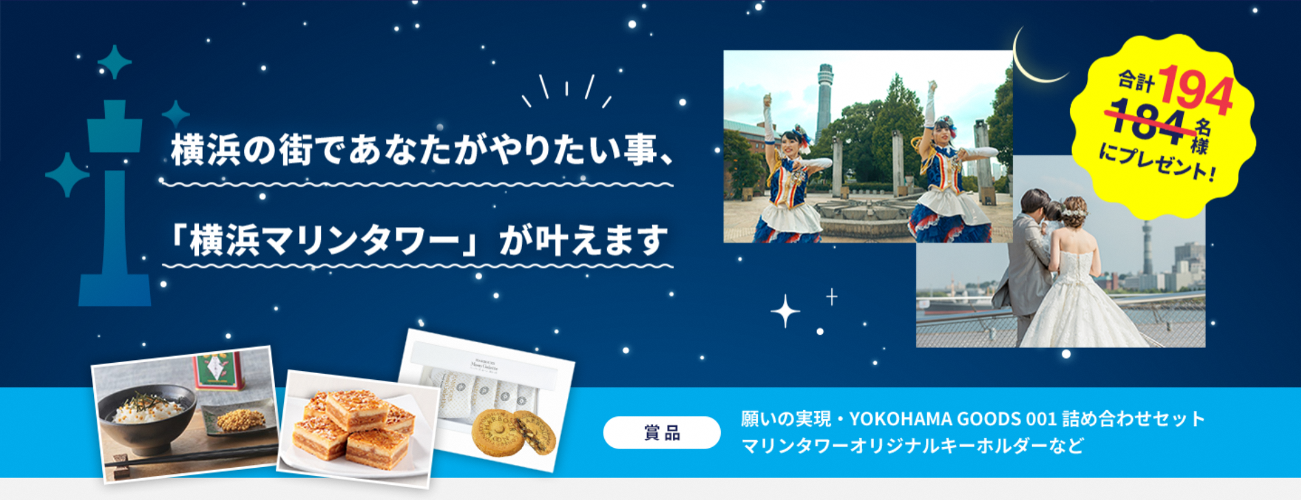 抽選で194名様に豪華賞品をプレゼント!願いの塔横浜マリンタワー、ラストキャンペーン開催中☆彡「横浜の街であなたがやりたいこと、横浜マリンタワーが叶えます」