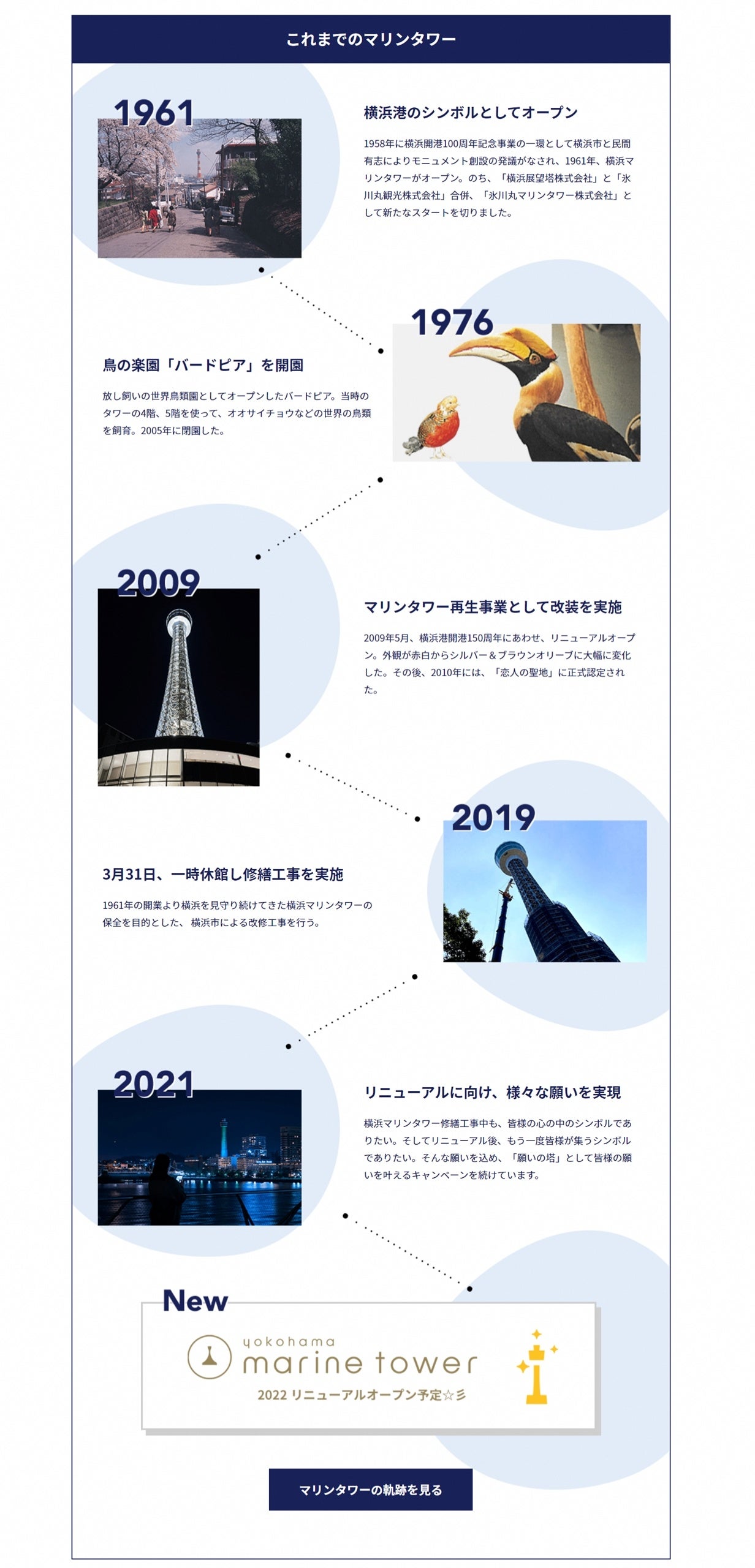 このサイトを訪れた皆さんが、リニューアルしたマリンタワーと再び笑顔で出会えることを願い、みなさんの横浜の街で叶えたい「願い」をマリンタワーが叶えます。