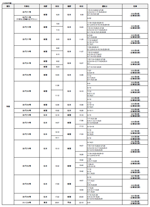 1.夏の臨時列車の運転期間