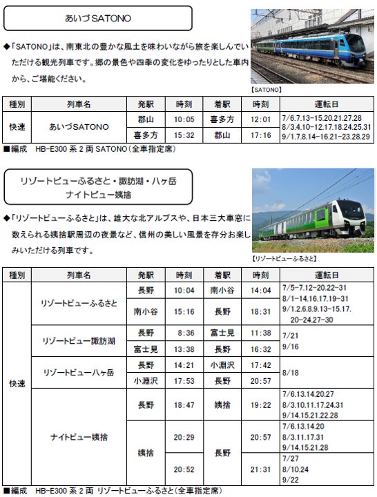 ※その他にも「のってたのしい列車」やイベント・キャンペーンに合わせた列車、行楽に便利な臨時列車を運転します。詳細については別紙をご覧ください。時刻表もあわせてご覧ください。