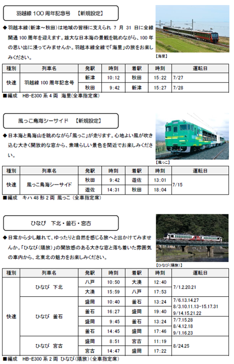 お盆期間や夏のイベントに向けて、各方面へ臨時列車を運転します。
