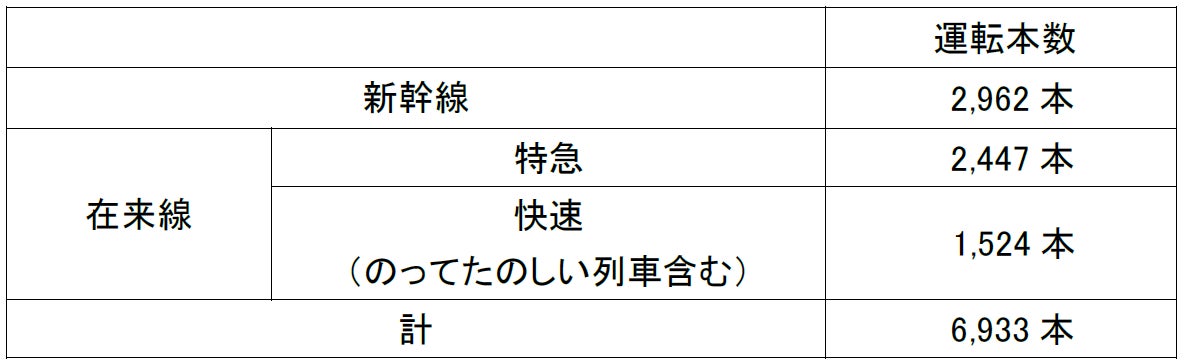 ※東北・秋田・山形新幹線のうち、併結して運転する列車は1本として計上しています。