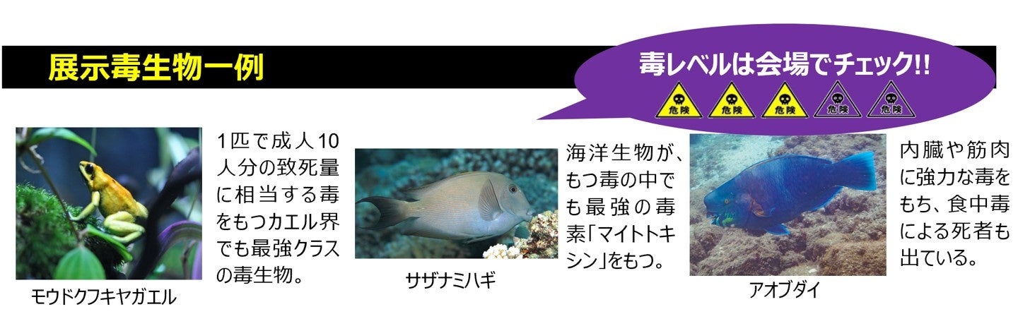 本イベントでは、生存戦略のために毒をもった約30種類の生き物を展示。