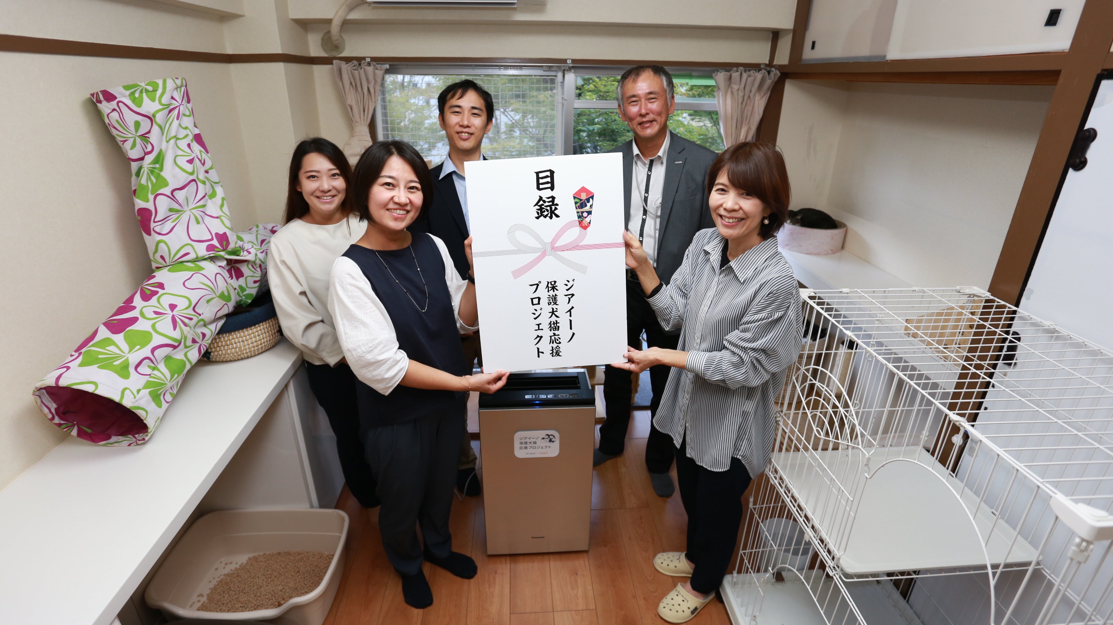 次亜塩素酸で空気を除菌・脱臭する「ジアイーノ」を贈り、保護犬や保護猫に快適な生活環境を提供することにより、譲渡活動を支援する 「ジアイーノ保護犬猫応援プロジェクト」。保護活動の質を高め、1匹でも多くの犬や猫が幸せになるように応援する社会貢献プロジェクトです。