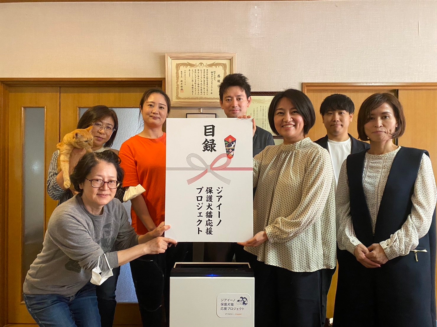 今年も多くの方に本プロジェクトを応援していただいたことで、目標金額210万円を達成することができ、ペットメディア「sippo」を通じて、参加する全国の動物保護団体に寄付を行いました。また、NPO法人「群馬わんにゃんネットワーク」様(群馬県)、NPO法人「猫の森」様(千葉県)において目録贈呈式を行い、「ジアイーノ」についての意見交換も行いました。