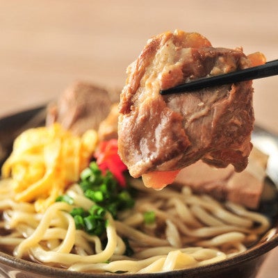 東江そばは、3種類のお肉が1度に味わえる贅沢な沖縄そばです。