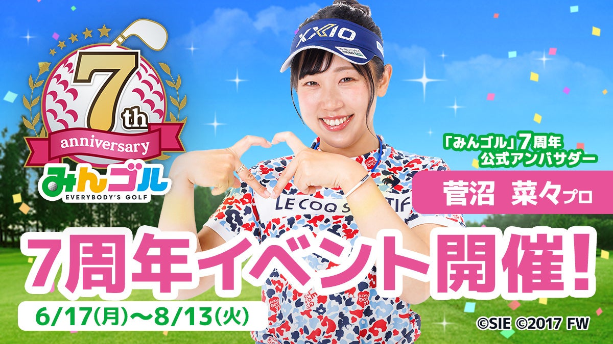 おかげ様で『みんゴル』は2024年7月4日(木)でサービス開始から7周年を迎えました。現在、『みんゴル』では女子プロゴルファーの菅沼菜々選手(以下、菅沼菜々プロ)を『みんゴル』7周年公式アンバサダーに迎え、7周年記念キャンペーン、イベントを開催中です。