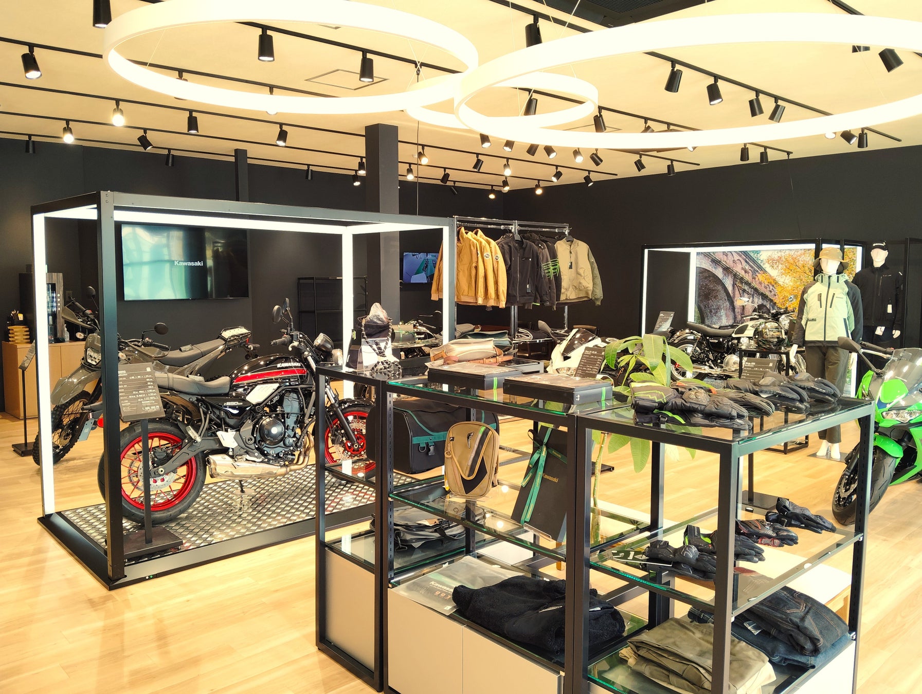 神奈川県横浜市の「カワサキ プラザ横浜金沢」が店内をリニューアル!ウッディなフロアが優しいぬくもりを伝えます。ひとりひとりに合ったモーターサイクルライフをご提供いたします。