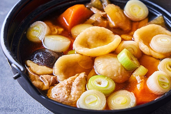七輪にてご用意する「岩手県産あい鴨のつみれ鍋」は濃厚な赤身の旨味と柔らかな肉質が特長の岩手がもをつみれにし、たっぷりのきのこを使用し風味よく仕上げました。その他、青森県産の黒ニンニクを使用した「長芋と黒ニンニクの豚バラ巻き揚げ」や「帆立貝とわかめバター焼き」等をお楽しみいただけます。