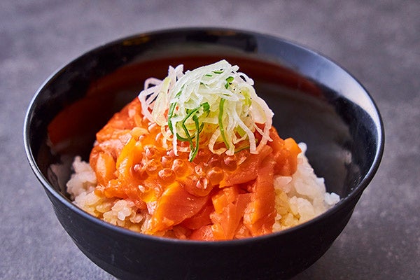 白神山地のふもとで育った青森県の「深浦サーモン」をネギトロと合わせ食べやすいサイズのどんぶりでご提供します。色味もきれいで上質な脂と旨味がのった「深浦サーモン」をご堪能ください。