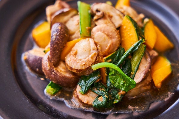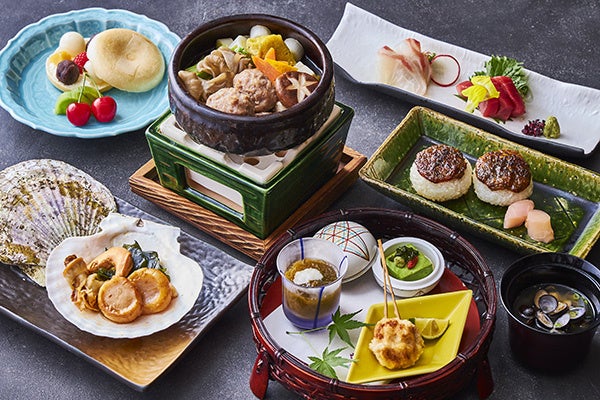 岩手県産の「みちのく清流鶏」を柔らかく焼き上げ、マッシュルームペーストで味に深みを出し、グラタン風に仕上げた「クリームマッシュルームソース焼き」はみちのく清流鶏の柔らかい食感とクリームソースのバランスがとれた味わいをお楽しみください。青森県南東部から岩手県北中部の郷土料理「ひっつみ」は、しっかりこねた薄くコシのある生地と、野菜を煮込んだ一品です。今が旬の青森県産帆立貝は、中国料理の調味料「沙茶醤」で旨味と辛みのある料理に仕上げました。日本料理・西洋料理・中国料理・スイーツの各専門シェフの珠玉の料理の数々を余すことなくご堪能ください。