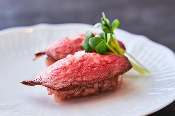 「岩手県産日高見牛と赤ワインライスの洋風握り」