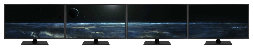 モニターを4台使うことによる広大な作業スペースを確保可能。ビジネスやホビーにも。