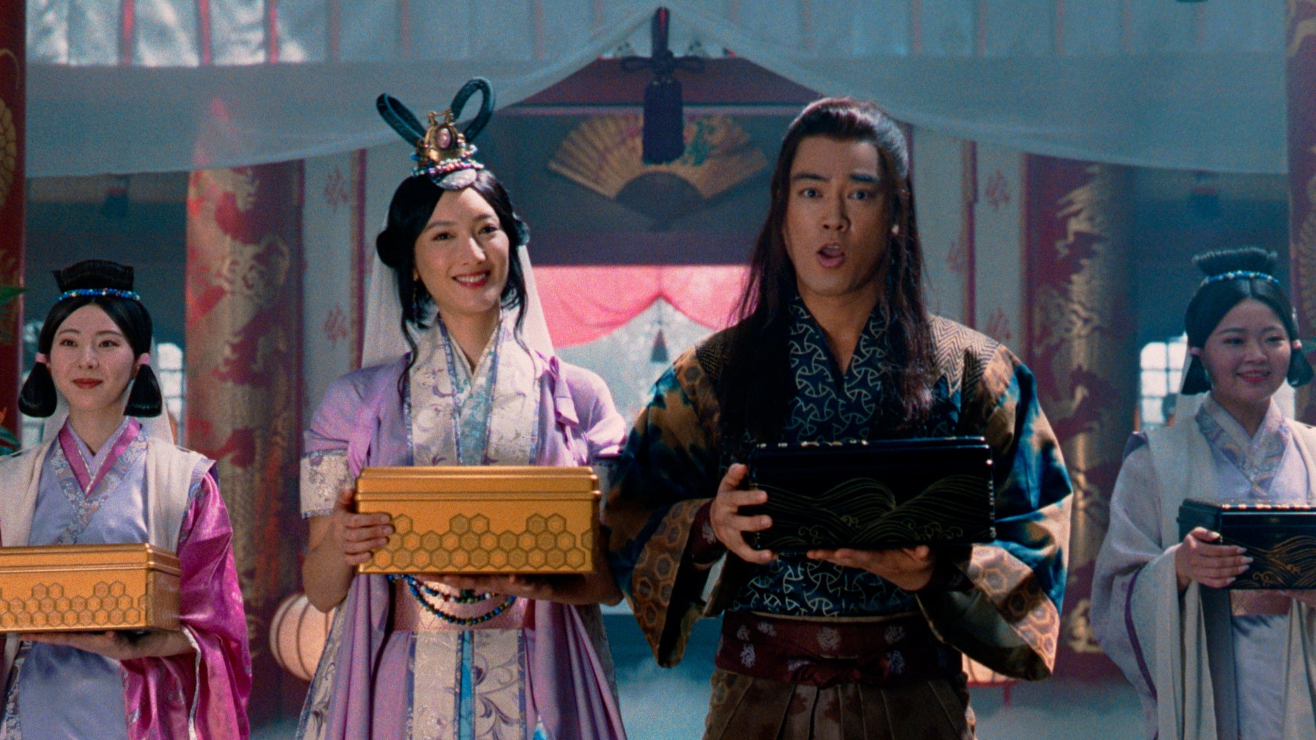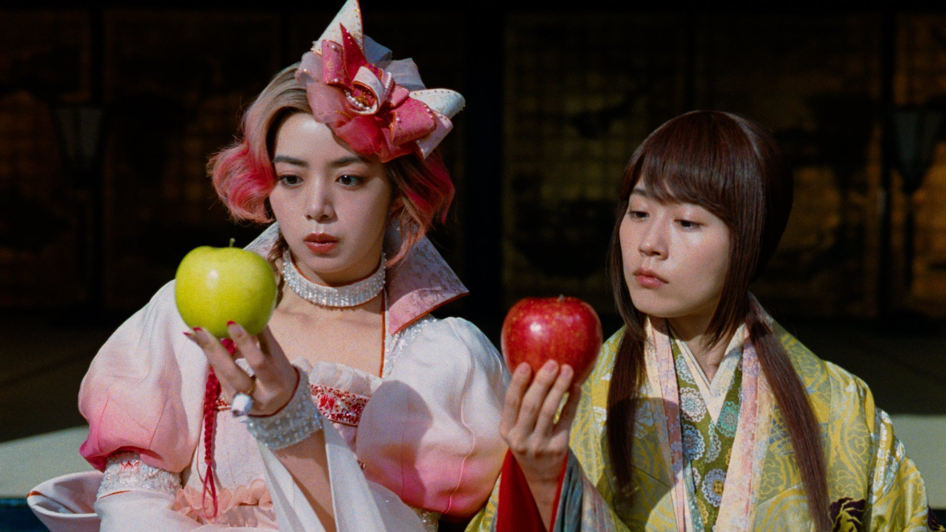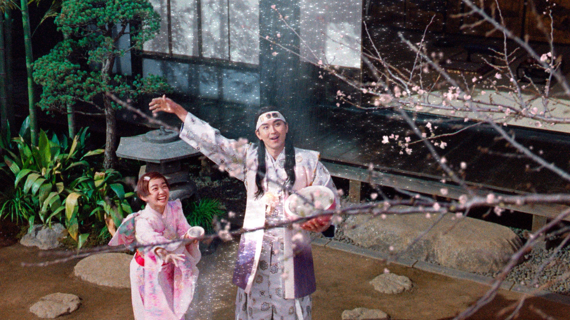 “金”と“愛”のプレートを手に、織姫に見守られながらどちらを選ぶか迷っている金太郎。竜宮城で乙姫に見守られながら黒と金のどちらの玉手箱を選ぶか迷っている浦島太郎。魔女から渡された赤と緑のりんごを不思議そうに見ている親指姫とかぐや姫。桃姫に見守られながら、普通の桃と大きい桃のどちらを選ぶか迷っている桃太郎。鬼ちゃんが勢いよく太鼓をたたくと、「ココロオドルの どっちどっち」という歌詞に合わせてそれぞれの舞台で踊り始めます。桃太郎が大きい桃を刀でスパッと切ると、中から灰が現れます。不思議に思いながら桜の木に投げてみると、一気に桜が満開に。そして満開の桜の下でみんなが踊り出します。「ココロ オドラセロ」と大きく腕を振ったり、「ときめいたのはどっち 恋をしたのはどっち」と左右に指を指したり、「迷ったら迷わず 困ったら空見て」とみんなで空を見上げ、最後は「オドルほうで いいじゃんいいじゃんいいじゃんね」と、明るく幕を下ろします。新CMはau公式YouTubeチャンネルにてご覧いただけます。