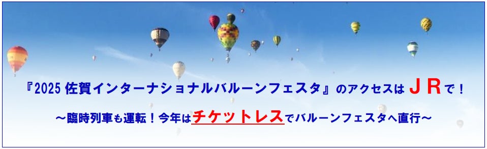 JR九州では開催期間中、長崎本線(鍋島駅~久保田駅間)に「バルーンさが駅」を臨時で営業し、臨時列車の運転、特急列車・普通列車を臨時停車いたします。さらに、今年は「QRチケレス」でご乗車いただける割引きっぷを発売します。「2025佐賀インターナショナルバルーンフェスタ」へは、快適で便利なJRでお出かけください!