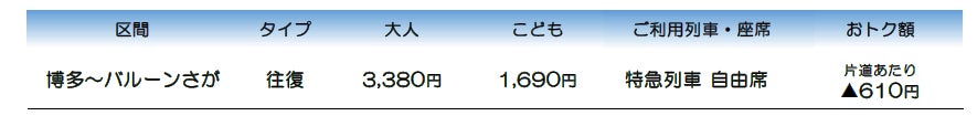 博多駅~バルーンさが駅まで、おトクなきっぷを発売します。