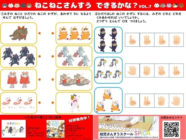 絵本『たすひくねこ』に登場するねこたちと一緒にさんすうを勉強することができる、