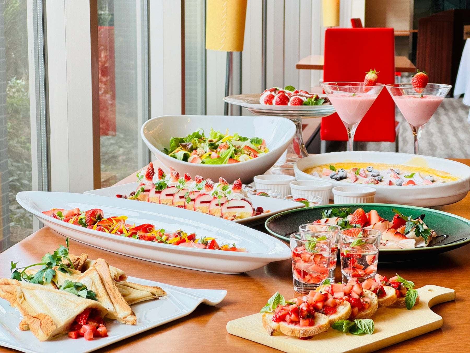 すすきの交差点から徒歩3分に位置するホテルでは、毎年恒例となっているゴールデンウィーク限定の「ストロベリーランチビュッフェ」を今年も開催します。ホテル3階のレストラン「ボルドー」で提供される本ビュッフェでは、前菜からデザートまでイチゴをふんだんに使用。肉料理のソースやサラダ、カルパッチョ、フリットなど、意外な一品にもイチゴを取り入れ、ホテルレストランならではの独創性と⾮⽇常あふれる味わいお楽しみいただけます。