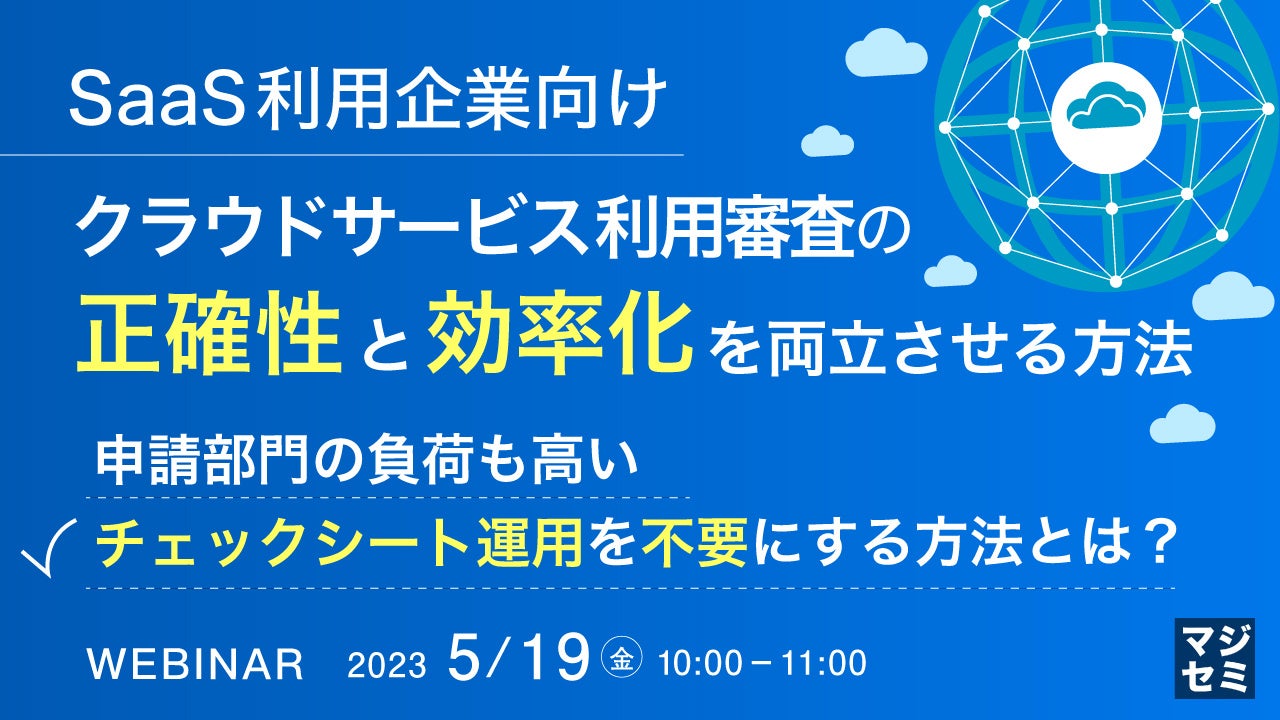 マジセミ株式会社はクラウドサービス利用審査の負担というテーマのウェビナーを開催します。