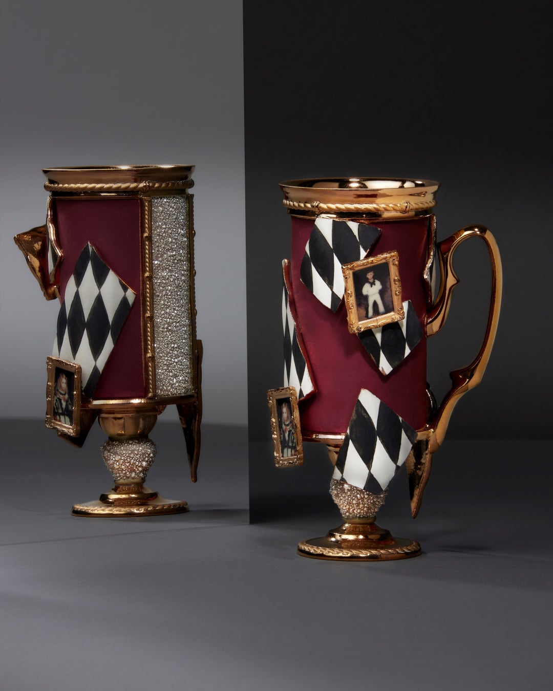 東金聖(とうがね・ひじり)は、アメリカの美術大学で彫刻を学び、卒業後は現地でアーティスト活動を開始、陶磁で現代人のありのままの姿を表現する生写人体彫刻などを発表しました。帰国後、現在は陶芸の産地として有名な岐阜県多治見市を拠点に様々な作品を制作しています。美濃焼の伝統技法「ガバ鋳込み」(※)を用いたティーカップなどオリジナリティ溢れる華やかな装飾を施した器が、国内だけでなく海外でも注目を集めています。