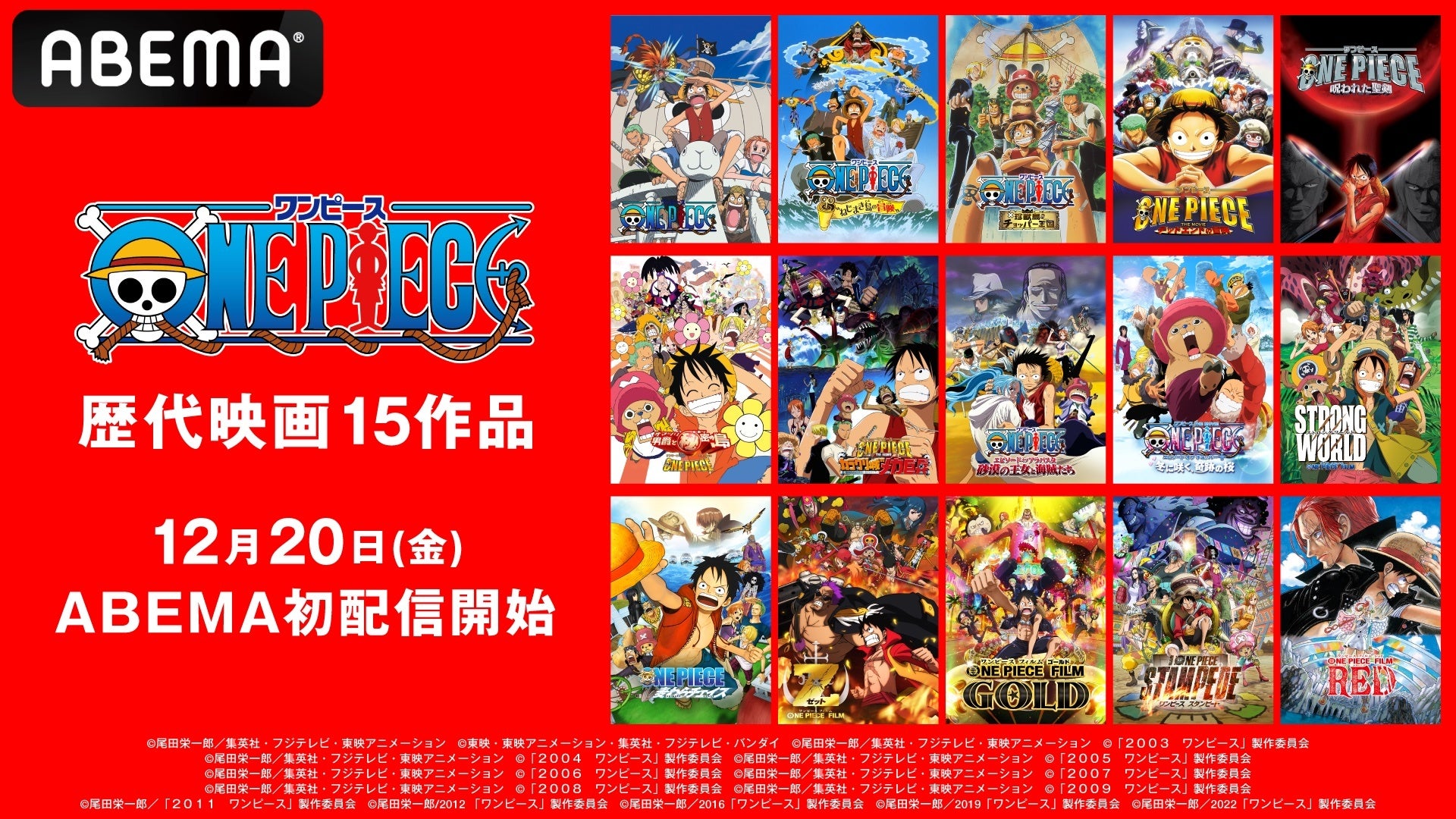 アニメ『ONE PIECE』歴代映画15作品が12月20日(金)より「ABEMA」で初配信決定!第1作からシリーズ歴代No.1ヒットの『ONE PIECE FILM RED』まで15作品を一挙配信開始