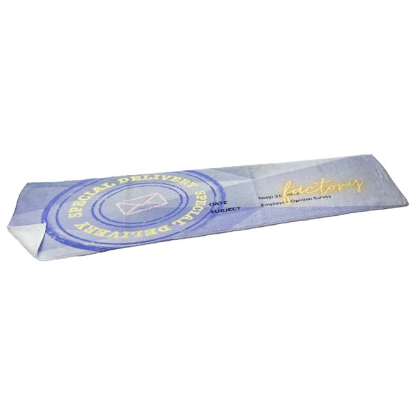 ライブ・イベントの定番応援グッズとしてはもちろん、スポーツチームのオリジナルタオルや企業ノベルティとしても最適。ホワイトベースで全面プリント対応なので、デザインの自由度も抜群です。