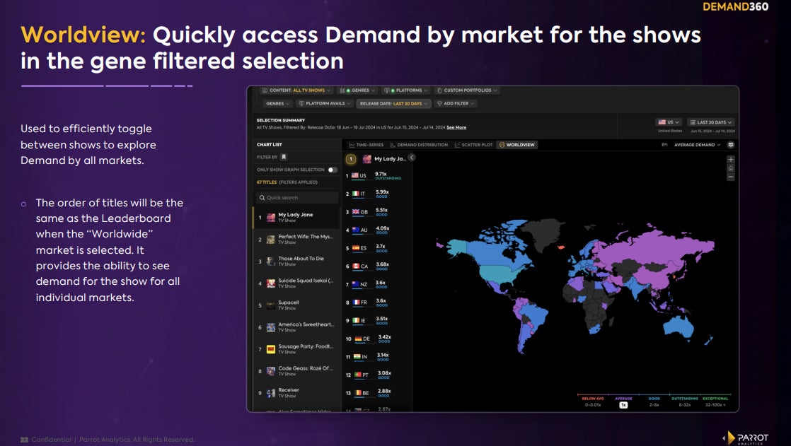 なお、東京ビッグサイトで2月27~28日に開催される「マーケティング・テクノロジーフェア東京2025」において、ParrotAnalytics社からDouglas Montgomery氏に登壇いただき「Demand360」データを用いたコンテンツIPセッションを実施します。ご興味関心のございます方は、是非お申込みいただき、ご聴講ください。
