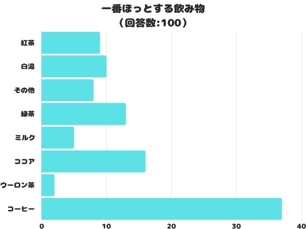 普段よく飲む飲み物で「一番ほっとする飲み物」をアンケートにて調査したところ、1位は「コーヒー」でした。