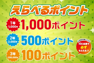 期間中に対象商品を購入のうえ、特設サイトのマイページに商品情報を入力し、応募すると抽選で等級に応じたえらべるポイントが当たります。