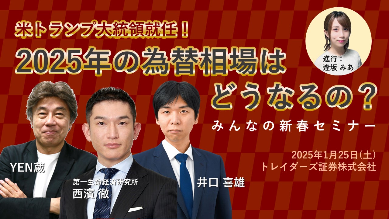 トレイダーズホールディングス株式会社(東京証券取引所スタンダード市場8704)のグループ会社で、外国為替証拠金取引事業(FX取引)等を営むトレイダーズ証券株式会社(本社:東京都渋谷区、代表取締役:須山 剛、以下「トレイダーズ証券」)は、2025年1月25日(土)に、『みんなの新春セミナー』を開催することをお知らせいたします。