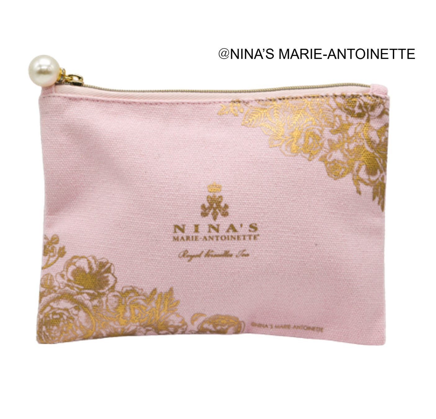 コラボパフェ&デザートのいずれかをご注文いただいたお客様に、ニナスのブランドロゴとRoseモチーフ入りのニナス オリジナル ミニポーチをプレゼントします。