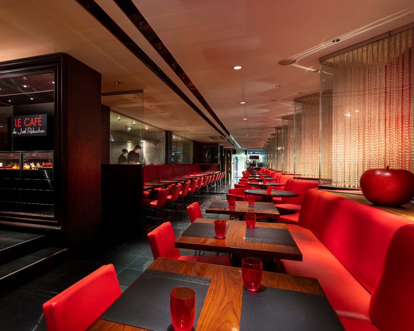 2004年4月に東京・日本橋髙島屋内にオープンし、ジョエル・ロブションの料理哲学はそのままに、カフェならではのガレットやサンドウィッチからコース料理まで幅広くご用意しています。赤と黒を基調としたシックなデザインの店内には11万個のスワロフスキーが輝いています。