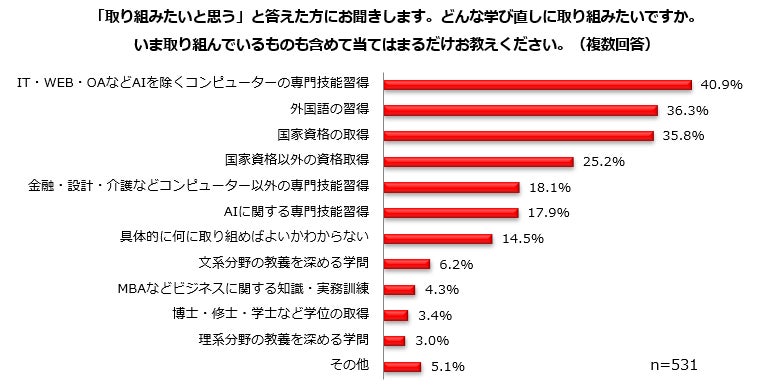 就労志向の女性たちは、リスキリングを望んでいるのか?学び直ししたい 81.8%/「IT・WEB・OAなど」40.9%、「外国語」36.3%/学び直しで「転職しやすくなる」69.2%