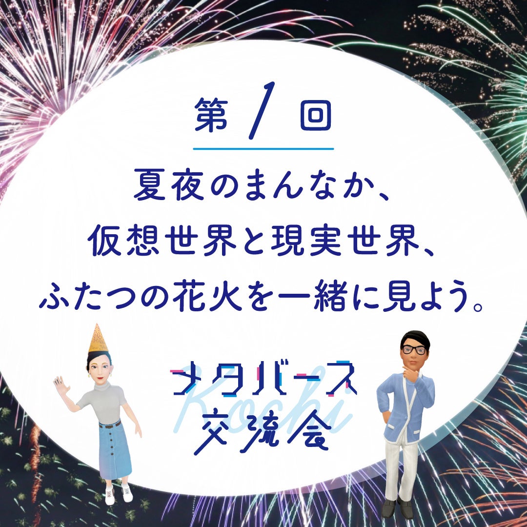 リアルイベント(三翠園|18:00~21:30) 17:45 受付(アバターネームと身分証で本人確認) 18:00 イベント開始:グループ分け・自己紹介 18:30 縁日エリアで交流&屋台風演出を楽しむ 19:30 三翠園から花火鑑賞(第75回 高知市納涼花火大会) 21:00 ミニゲーム&フリータイムでじっくり会話 21:20 マッチングタイム(連絡先交換) 21:30 終了 |
