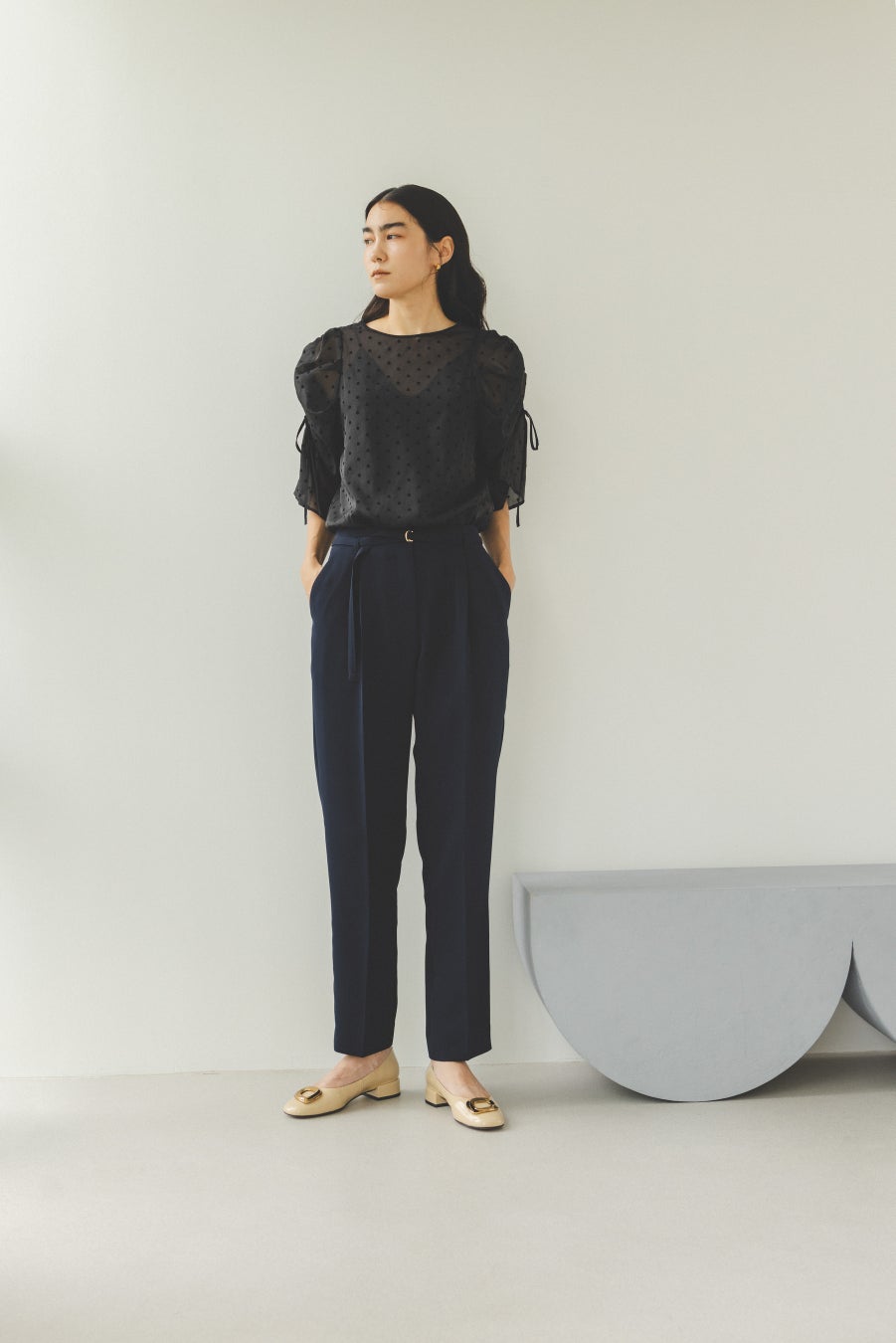 強撚ポリエステルを使用しているため、マットでドライタッチなさらっとした肌触り。