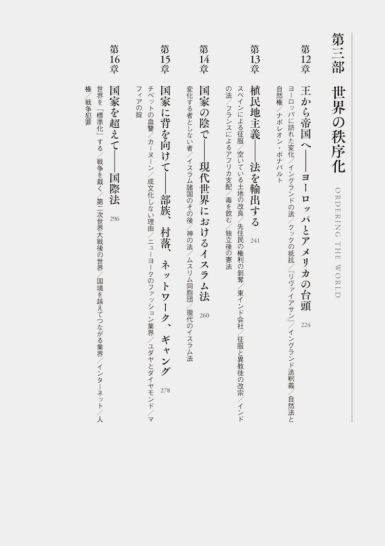 ピリーは、ヨーロッパ、アフリカ、アジア、アメリカ大陸の国家で発達した多様で洗練された法体系へと、5千年の時を超えて私たちを誘う。