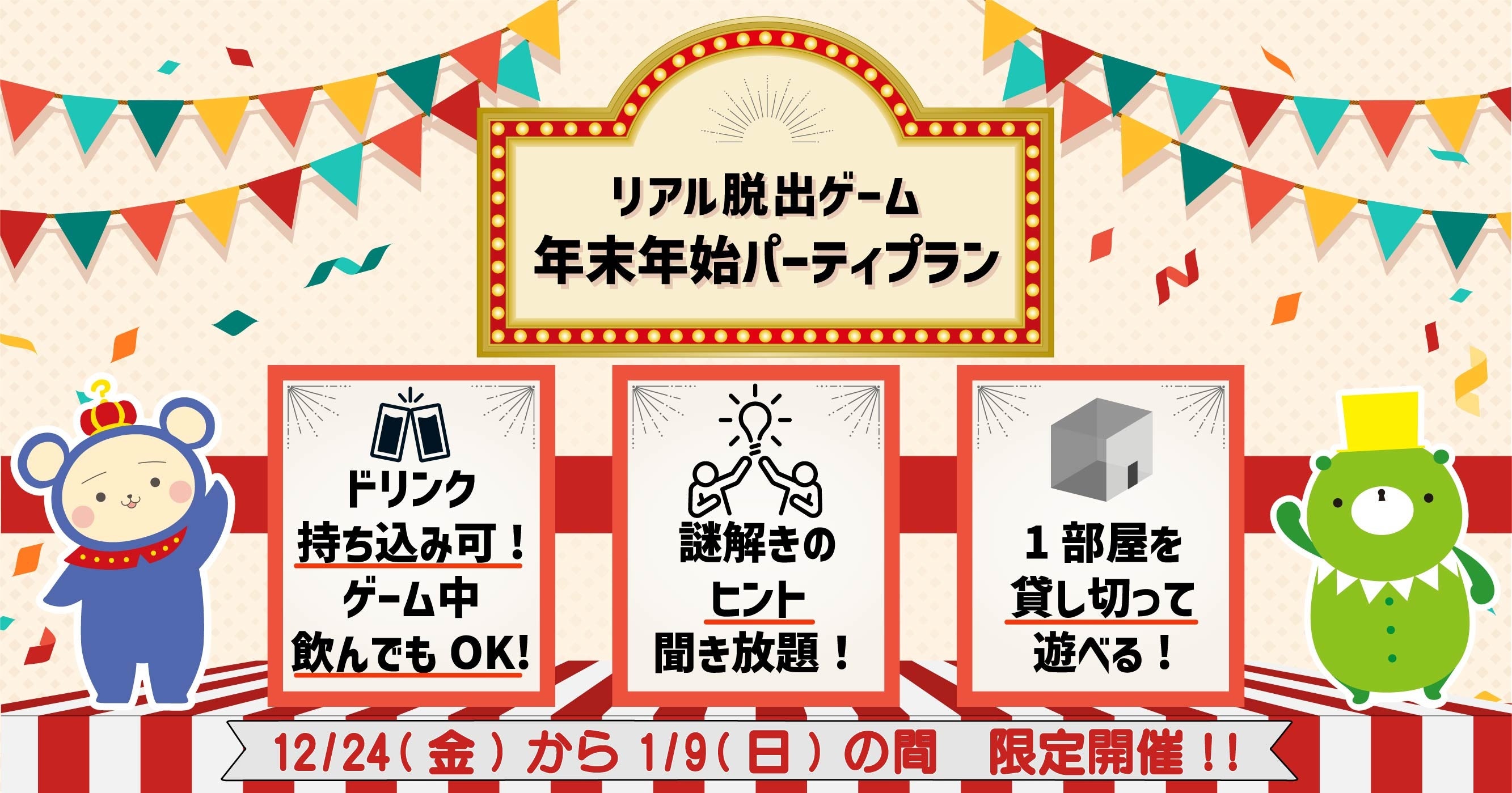 +++「リアル脱出ゲーム年末年始パーティープラン」概要+++