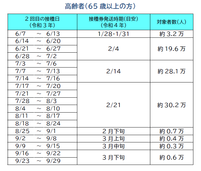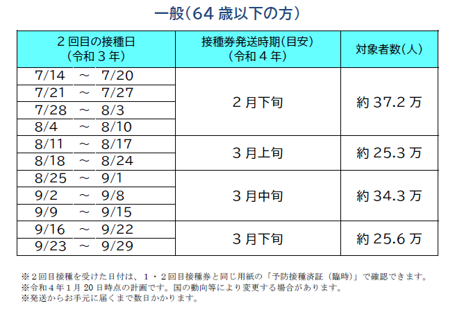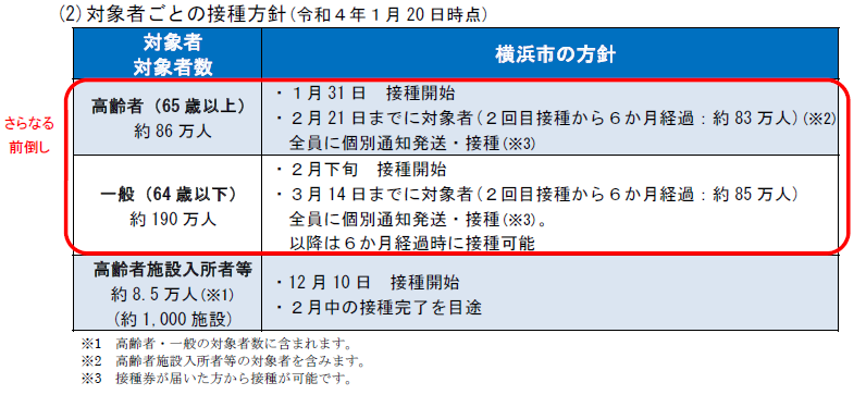 横浜市 新型コロナウイルスワクチン3回目接種券の発送目安