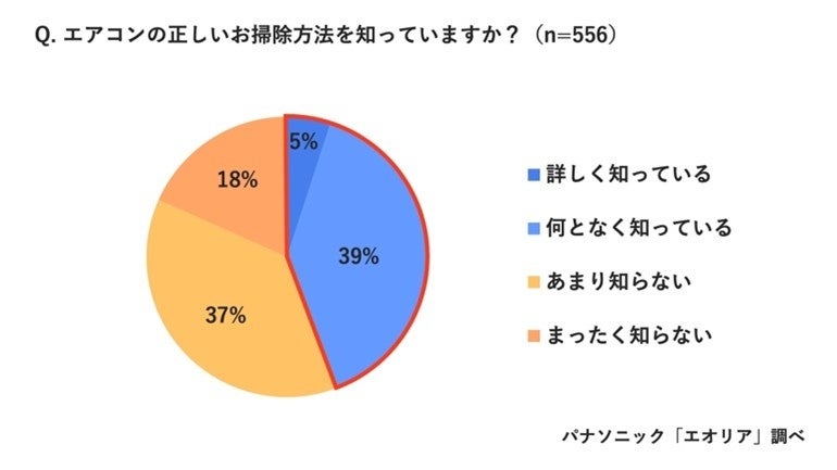 エアコンの正しいお掃除方法については、「知っている」と回答した方が44%の一方、「あまり知らない」(37%)、「まったく知らない」(18%)と、過半数の55%がエアコンの正しいお掃除方法を知らないことがわかりました。