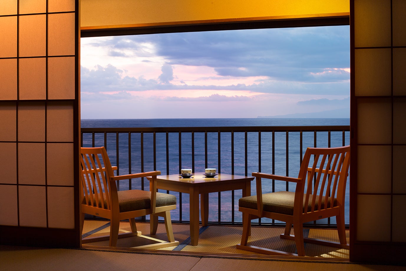 どこか懐かしい静かな港町、北川温泉の海沿いに佇み、海と伊豆大島のパノラマが広がる和の湯宿。自家源泉かけ流しの湯、伊豆山海の幸を味わう揚げたて天婦羅食べ放題の会席料理、海に昇る朝日と満月の夜にはムーンロードを望む客室で、ゆったりとお寛ぎください。