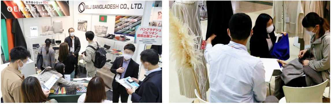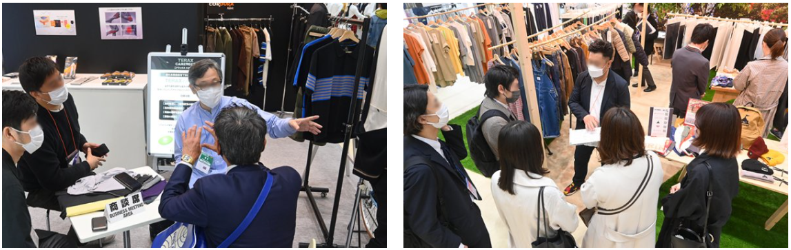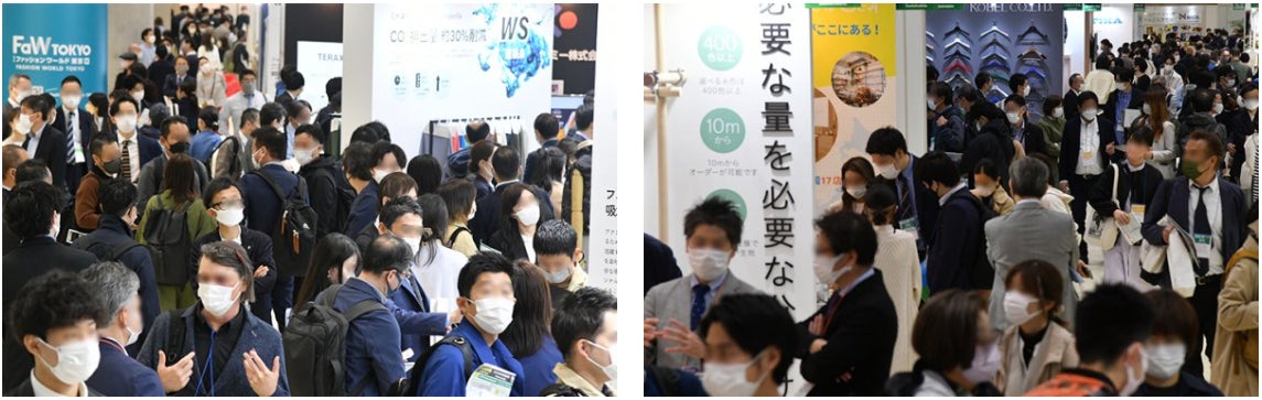 展示会初日から 最新のファッション製品・ブランド・サービスを求め、バイヤーが多数来場し、会場内では活発な商談が行われ、今回からの新規開催展「第1回 ファッションDX EXPO [春]」もメタバース活用や仮想試着サービスが出展し、大変盛況な賑わいを見せています。