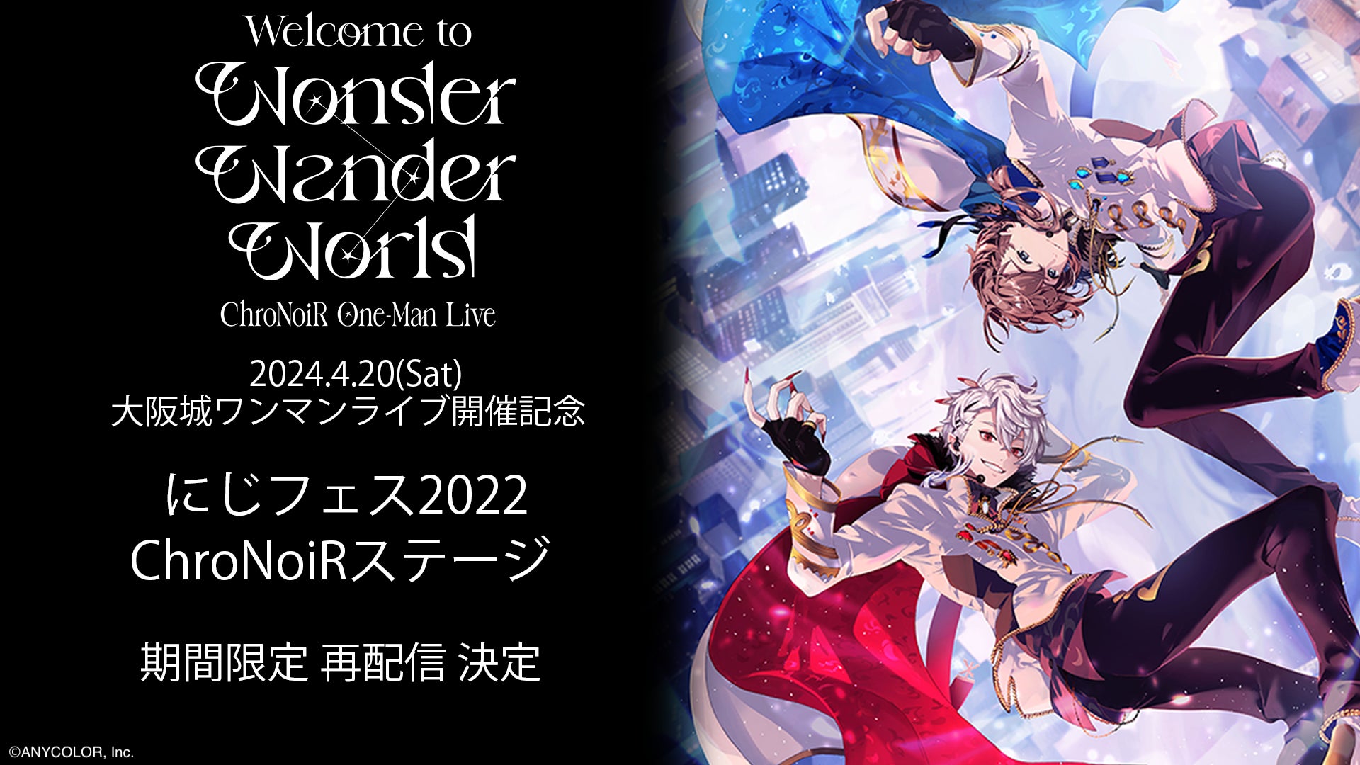 「ChroNoiR One-Man Live "Welcome to Wonder Wander World"」開催記念!にじさんじフェス2022「ChroNoiRステージ」を2024年4月8日(月)19:30から全編無料 再配信決定!