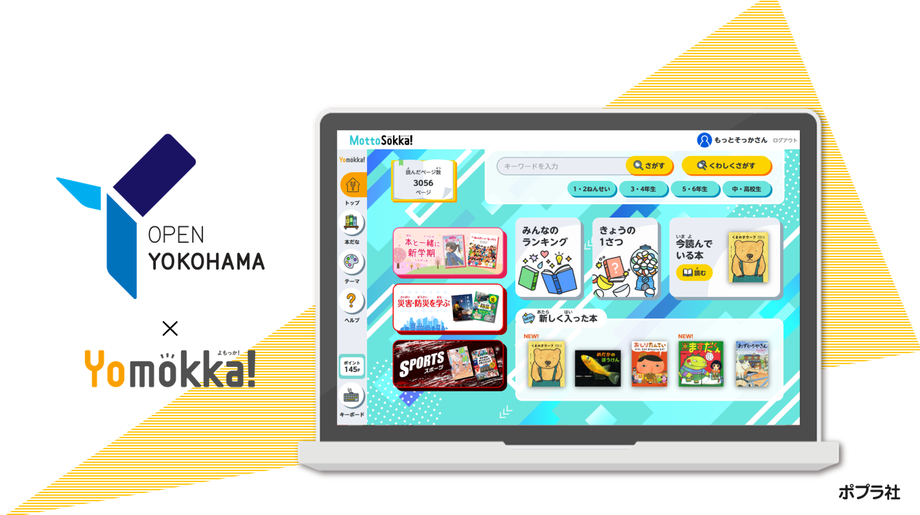 2024年7月3日、子どもたちの読書機会の充実に向けて、株式会社ポプラ社は横浜市教育委員会と連携協定を締結しました。ポプラ社が小・中学校向けの本と学びのプラットフォーム『MottoSokka!(もっとそっか!)』を通じて提供する、読み放題型電子図書館『Yomokka!』が、2024年7月から横浜市の小・中学校9校の学校図書の充実のために試行導入されます。