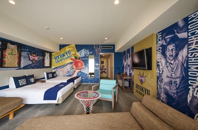 沖縄アリーナでの試合観戦の際や特別な日に、キングスコンセプトルームにぜひご宿泊いただき、遊び心溢れるインテリアやアメニティーをご体感ください。
