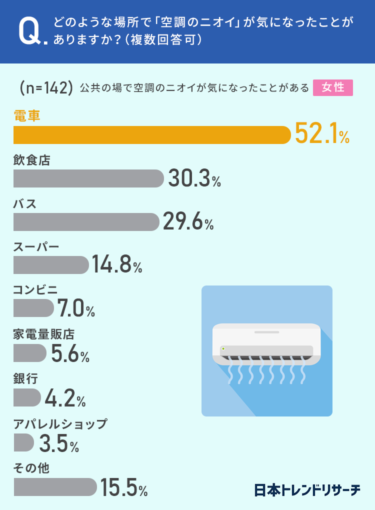 ■店内や電車内など公共の場で、「空調のニオイ」が気になった経験は?