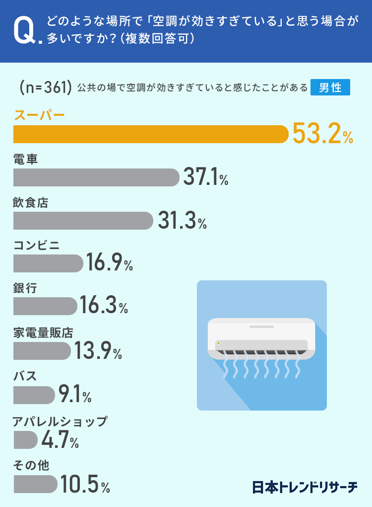 日本トレンドリサーチ・エアコンが効きすぎな場所に関する調査