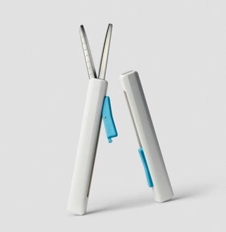 持ち運ぶのに適したスリムでシンプルなフォルムのハサミです。スライダー内部の機構バーツにはアクセントカラーのオレンジをあしらい、遊び心を体現しました。