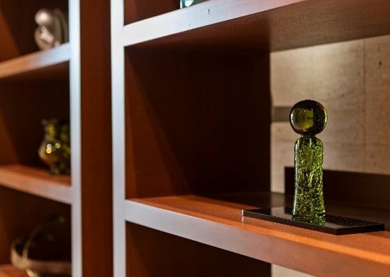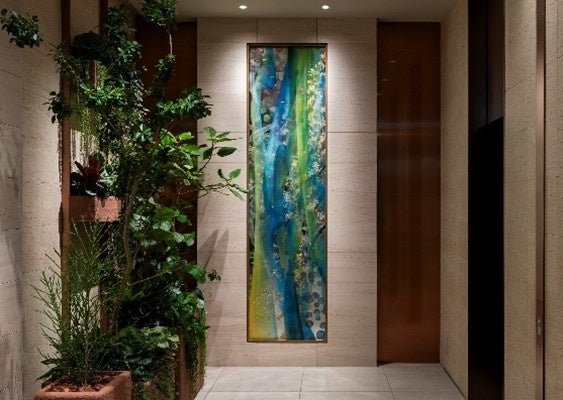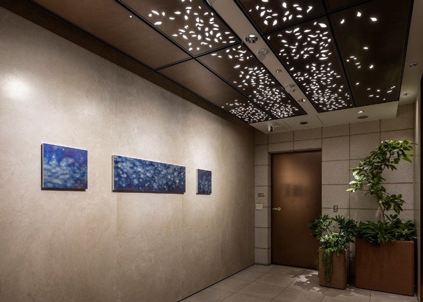 1階エレベーターホールには、杜の木々の間からこぼれ落ちる光をイメージしたチタン製のアートを設置しており、見る角度や光の当たり具合によって多彩な表情を楽しむことができます。7階エレベーターホールには、仙台の自然をテーマに、ケヤキの葉の瑞々しさ、萩の花の可憐さ、大滝の水のきらめきを一体化させたガラス製のアートを設置しました。また、7階ロビーの本棚には、東北にゆかりのあるアーティストによるオブジェを展示しています。