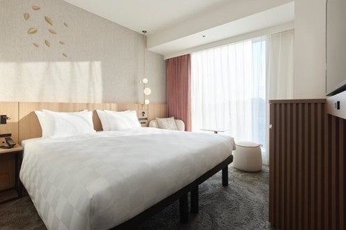 お客様のニーズが多様化していることを受け、様々な滞在シーンに対応できる客室構成とし、グループやファミリーでご利用いただきやすいツインルーム、トリプルルームを増設。また、フォースルームルームを新設し、3~4名でご宿泊いただける客室を2室から34室に大幅に増設いたしました。全客室の内装・家具・備品を一新し、ゲストがゆったりとくつろげるような色調とデザインにリニューアル。インテリアカラーは、客室タイプによって異なるカラースキームを採用しており、多くの客室では陽だまりをイメージした暖色系、30㎡以上の客室では木陰の涼しさをイメージした寒色系を取り入れています。また、定禅寺通りのケヤキ並木の葉をイメージしたアートを設置し、空間に自然の温もりを表現しました。バスルームは表装を更新し、洗面台やトイレなどの設備を交換することで、清潔感と機能性を向上させました。