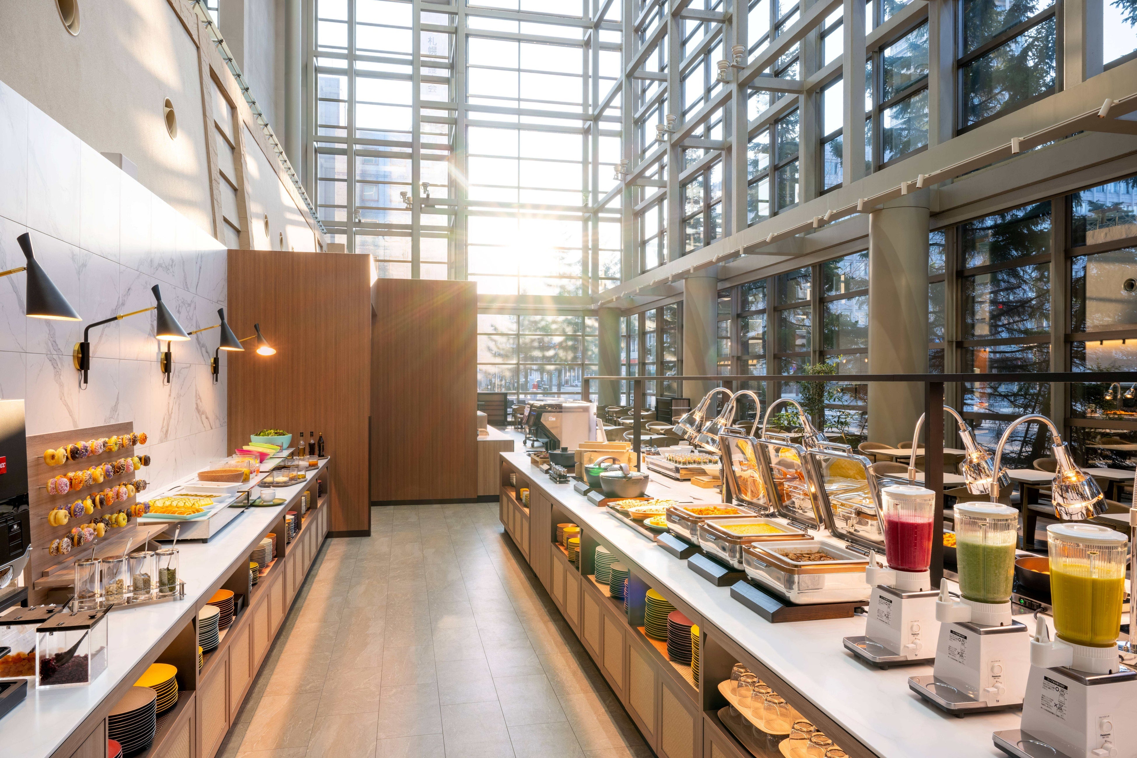 天井が高く開放的なビュッフェレストラン「Le Sensoriel(ル・サンソリエル)」では、北海道ならではの素材や食文化を活かした朝食をビュッフェスタイルで提供しています。北海道産バターミルクを使用したクラシックパンケーキをはじめ、札幌のスープカレー文化を代表する人気店「GARAKU」の味を、ホテルの朝食ビュッフェに合わせて食べやすくアレンジしたオリジナルスープカレーもお楽しみいただけます。